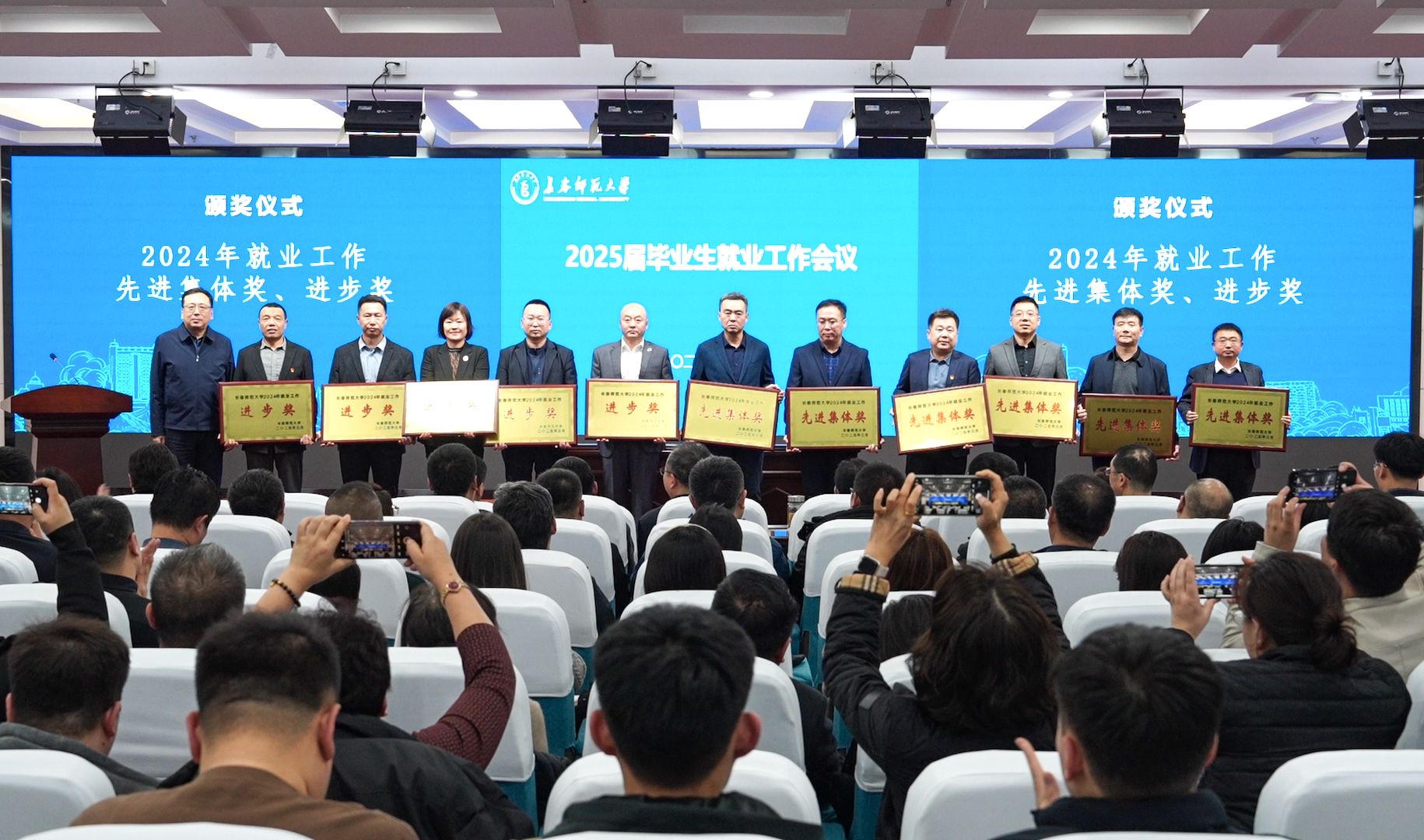 326日,学校在新图书馆报告厅召开2025届毕业生就业工作会议。党委书记刘多为2024年就业工作先进集体奖、就业工作进步奖获奖单位颁奖,并讲话。党委副书记、校长王延明为2024年就业工作先进个人代表颁奖。党委副书记张广翠主持会议。